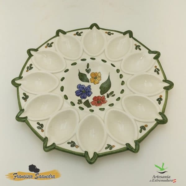 Este producto artesano y tradicional dispone de huecos para presentar en tu mesa unos riquísimos huevos rellenos. Además está fabricado con doble cocción y un vidriado especial que permite su limpieza en lavavajillas. Gracias a su decoración, queda perfecto en mesas tradicionales o del estilo “ikea”.
